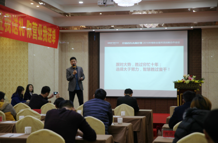 会议还邀请了格勒市场总监张总,张总提出营销是一场战争,在市场新趋势下,营销已由卖产品转向为卖策划、卖服务,格勒拥有一支高素质、专业的团队,定期为经销商策划市场活动、产品知识培训,张总幽默的脱口秀式解说将会议推向了一次又一次高潮。