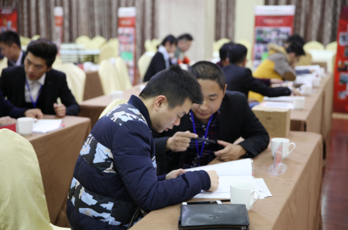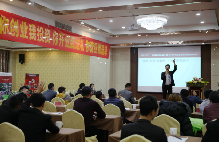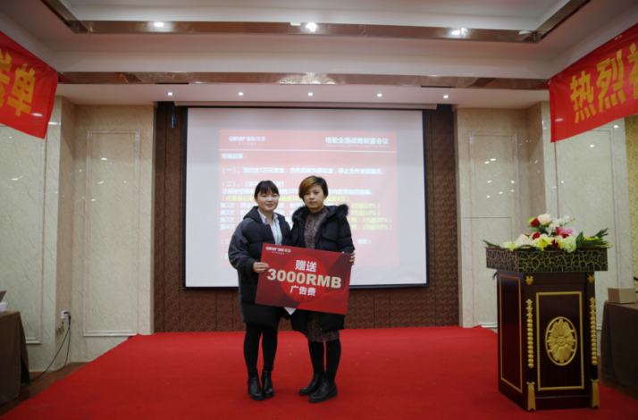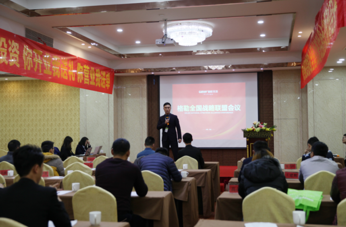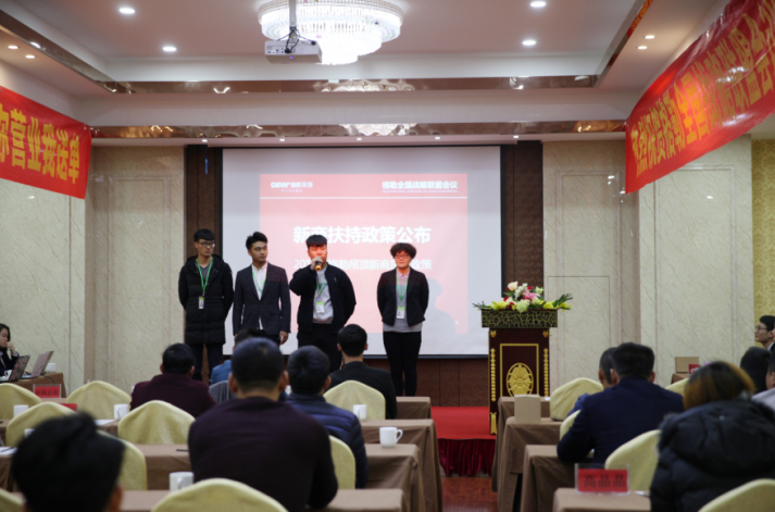接着便是招商总监施总致辞,施总邀请了格勒各部门的代表上台,家人们纷纷讲述了自己部门的职责并热情邀请在场的意向经销商加盟格勒。随后,施总为参会者细致地描述扶持政策,“你开店我投资”,“你开业我送单”等政策让意向经销商看到加盟格勒的前景。