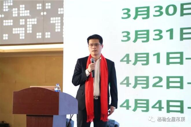 本次经销商大会,还将全新发布格勒2019年全新产品,格勒营销战略伙伴--目思营销策划有限公司总经理陈总为在场家人发布2019春季新品,助推格勒经销商扩充产品线,以及扩大符合更多渠道的大众消费产品,继续深耕吊顶市场。
