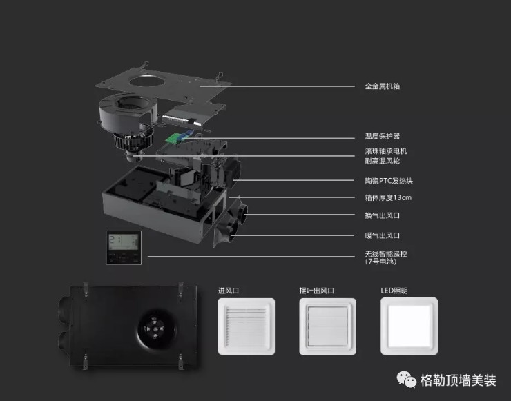 正如你所见,格勒X7S采用全金属隐藏式机身,高度防燃防腐,绝缘喷漆工艺处理,防静电不漏电,安全可靠;搭配多用途照明+换气风口+取暖风口安装,完美划分各功能模块,实用且高颜值;