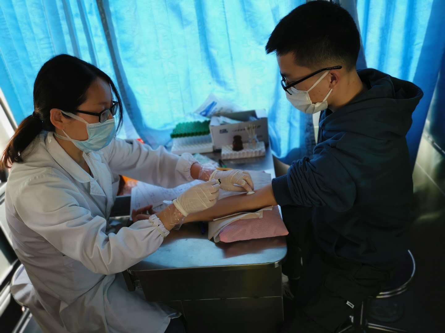 在市中心血站工作人员的引导下,大家认真填写献血登记表、测量血压、抽血化验,经血液检验合格后再开始无偿献血。