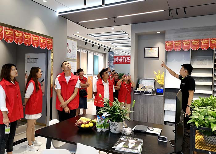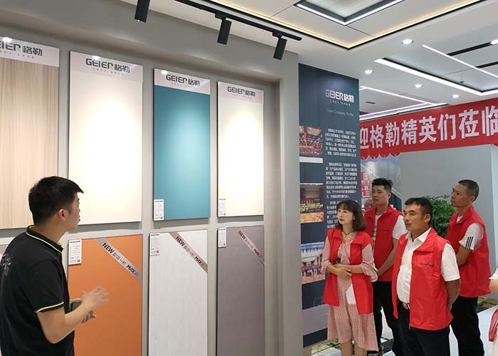 上午,在市场部富经理的带领下,各地经销商家人们参观了格勒镇雄专卖店。镇雄店是一家顶墙一体店,也是格勒最新的SI形象店。