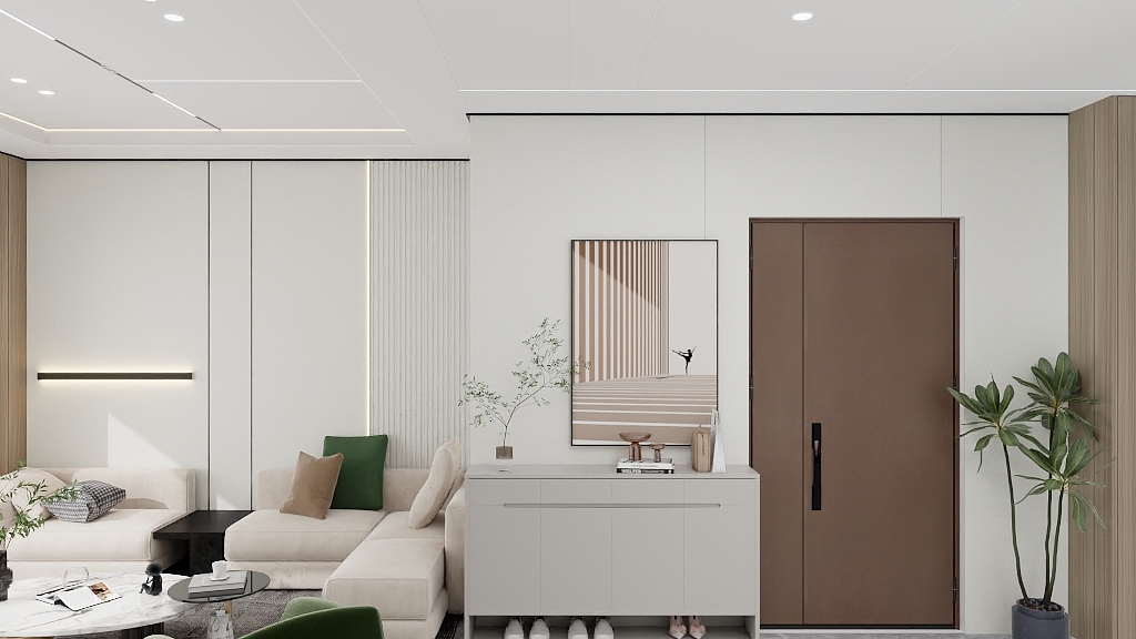 灵活尺寸,无缝衔接,与线灯完美融合,高级简约扑面而来,展现客厅别致的现代美。